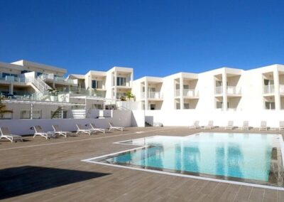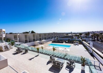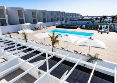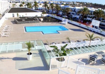 Hermoso apartamento en la planta baja de la Residencia «Senator» en Costa Teguise. Todos los interiores de los apartamentos y las áreas comunes han sido recientemente renovados, siguiendo el diseño característico de César Manrique y orientados hacia el sur para disfrutar al máximo del sol.